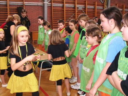 Od prvního písknutí „bojovali“ všichni s velikým nasazením. Ani prohraný zápas nevzdávali předem a za to zaslouží pochvalu. A konečné umístění? Krásné třetí místo. Basketbalisti získali bronzové medaile, diplom, pohár a dětské šampaňské, kterým si připili. Nejlepším hráčem našeho družstva byla vyhlášena Michaela Plecháčová. Dagmar Moravcová byla zvolena nejlepším hráčem celého turnaje.