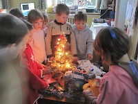 Na vánočním setkání nechybělo povídání o vánočních zvycích, zpívání koled, ani ochutnávka cukroví, které upekly maminky. Vyslechli jsme „zpívání na schodech“ v podání školního pěveckého sboru Ostrováček a společně s ním jsme si zazpívali. Konečně jsme se dostali k rozbalování dárků, které během tří dnů přibývaly pod naším vánočním stromečkem. Dárečky nás potěšily, pochlubili jsme se s nimi kamarádům a společně jsme se vyfotografovali. Pak už jsme si popřáli krásné Vánoce a rozešli se domů.