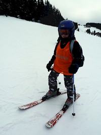 Cesta utekla jako voda a dorazili jsme do Pece. Vyložili jsme a vzali si všechny potřebné věci, aby mohl autobus co nejdříve odjet. Chvilku jsme čekali, než si všichni, co potřebovali, odskočili a dostali permice. O chviličku později jsme už stáli nahoře na sjezdovce a čekali na poslední. Na ty jsme museli čekat hodně dlouho, protože prý nedostali permice, ačkoli jim je pan učitel dával. Nakonec se to vyřešilo a my, do kterých se pomalu začala dávat zima, jsme odjeli na vedlejší sjezdovku. Počasí nám moc nepřálo. Foukal šílený vítr a byla docela zima. Proto jsme se po pár jízdách usídlili v malém bufetu na sjezdovce. Zatímco se někteří snažili co nejrychleji zahřát, hlavně prsty, jiní už stáli frontu na horkou čokoládu a párek v rohlíku.