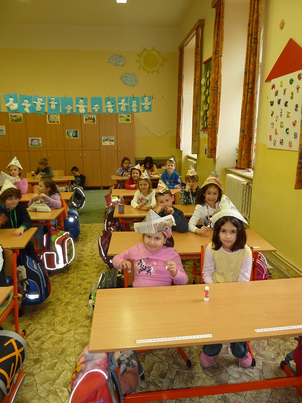 O tom, že při hudební výchově se nemusí jen zpívat, se přesvědčila třída 1.A. Když se děti učily písničku "Přijíždí k nám Večerníček", poskládaly si pěkné večerníčkovské čepice a vyzkoušely si, jak Večerníček při pozdravu čepici smekne a zase si ji nasadí. Při samotném zpěvu zjišťovaly, že není jednoduché čepici na hlavě udržet. Užily si při tom velkou legraci. Na přiložených fotografiích si můžete prohlédnout jejich spokojené tváře.