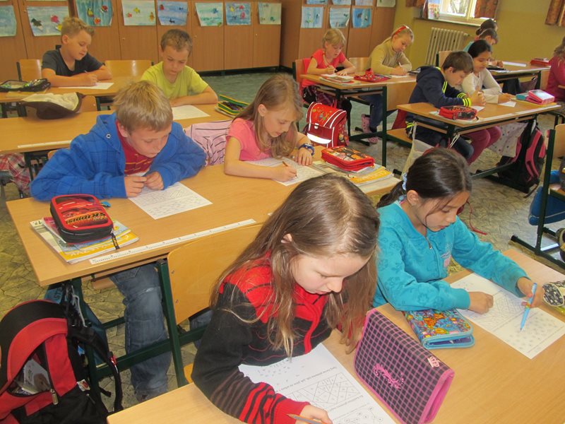 V českém jazyce plnily děti mnoho netradičních úkolů nejen na pracovních listech, kde například mohly nalézt cestu bludištěm jen tehdy, když znaly správně abecedu, ale i s různými kartičkami. V matematice se například pokusily seřadit názvy čísel podle abecedy, při tělesné výchově zase soutěžily v družstvech v řazení písmen podle abecedy a v hodině výtvarné výchovy si abecedu ztvárnily barevně.