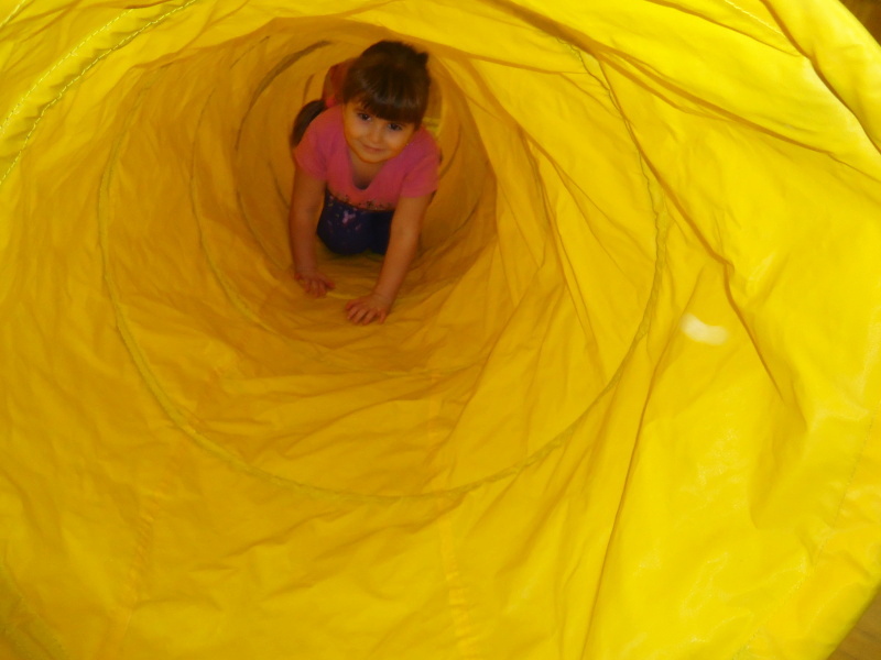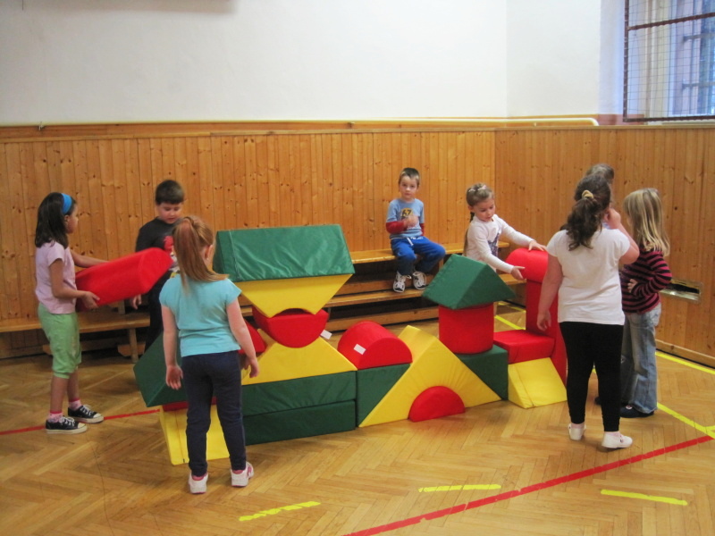 Pozdravili jsme se s dětmi ze Sportíka, společně jsme se rozcvičili, potom jsme se rozdělili do družstev a s radostí se pustili do cvičení na stanovištích. Děti si vyzkoušely lezení po horolezecké stěně, prolézaly tunelem, stavěly hrad z kostek, zacvičily si s obručemi a barevným padákem, zastřílely si na branku a hledaly cestu z bludiště.
