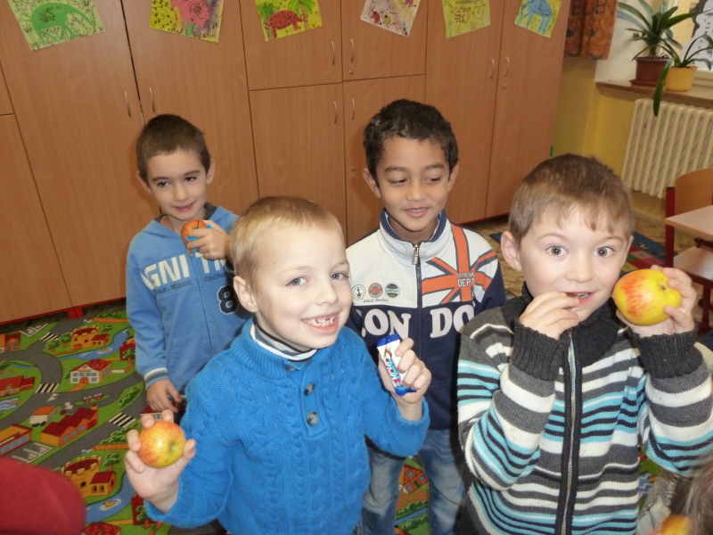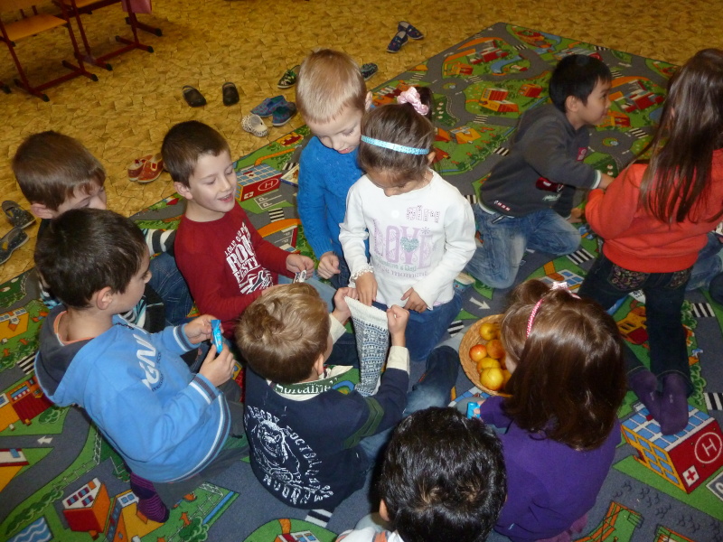 Ve středu 4.12. hned ráno jsme měli na okně nadílku od svaté Barborky. Ta nám do punčošky přinesla dobrůtky a jablíčka.