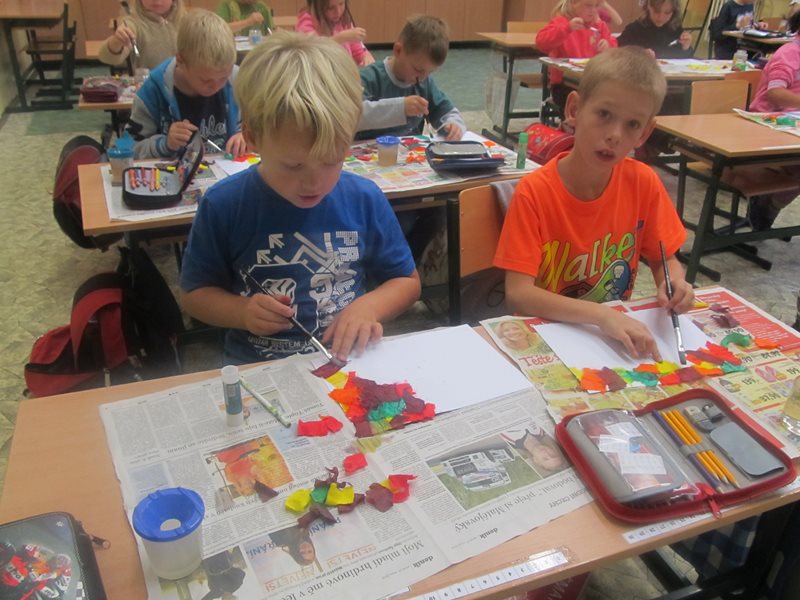 Za okny je krásně barevný podzim, a tak jsme se inspirovali jeho barvami v hodinách výtvarné výchovy a pracovních činností.