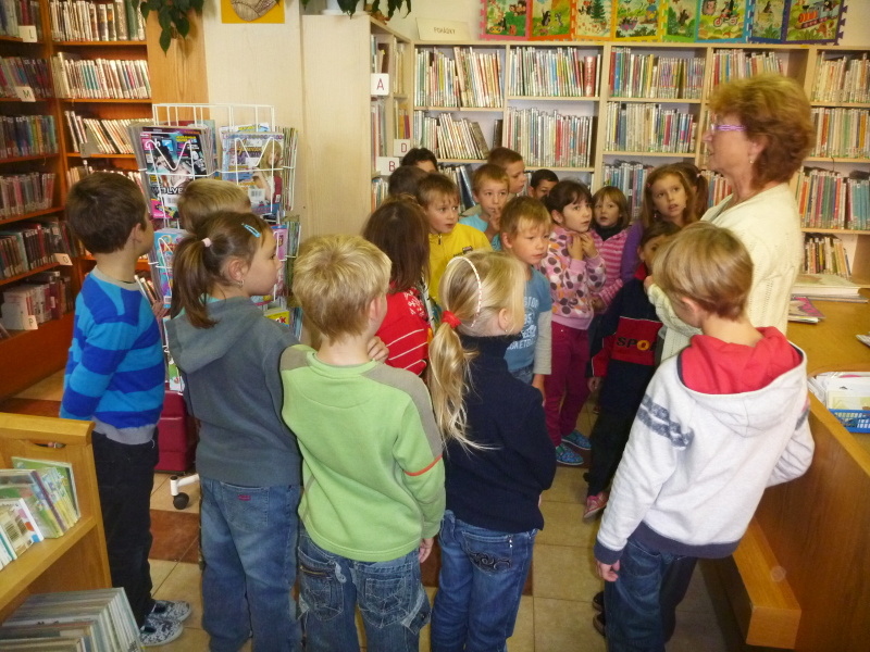 Paní knihovnice Kašparová už na nás čekala a nejprve nás provedla jako hada celou knihovnou. Ve skladu knih, kde jsou stovky knížek a úzké chodbičky mezi regály, se některé děti možná i malinko bály! Nakonec jsme ale všichni v pořádku došli do oddělení pro děti, kde nám paní knihovnice ukázala některé časopisy, knížky a přečetla básničky o písmenkách, která jsme se ve škole už naučili. Nakonec nám slíbila, že se v knihovně určitě zase brzy sejdeme.