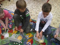 Velkou přestávku jsme věnovaly společné svačině, která navazovala na „představení“ a posouzení vlastní svačiny z hlediska zdravé výživy. Tento způsob hodnocení už děti ovládají dobře, děláme ho často.