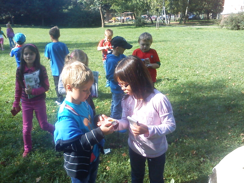 Raději jsme však vyrazili rovnou do terénu a busoly vzali s sebou. Začali jsme hledat sever. Nejdřív jsme busolami jen tak točili a kroutili, ale sever byl pokaždé jinde.