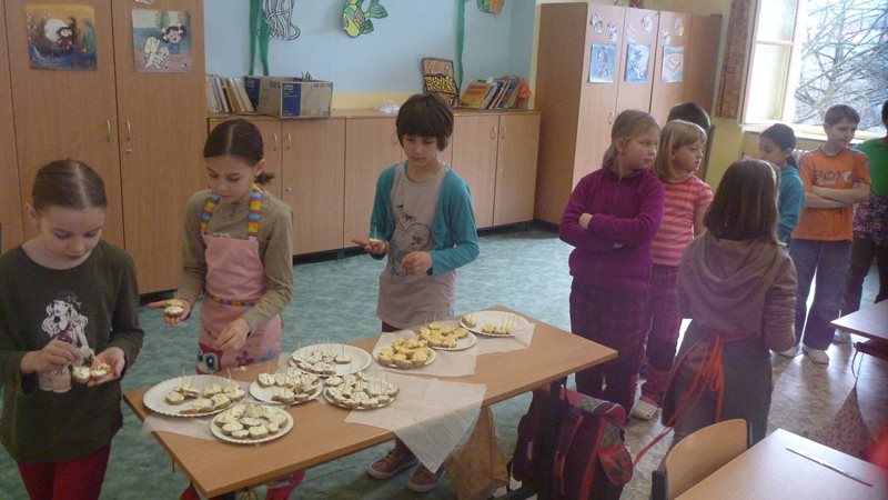 Naše škola je zapojena do projektu Pohyb a výživa, kdy se děti dozvídají o zásadách správné výživy a o zdravém pohybu. Protože o zdravé výživě jsme se už učili několik hodin, vyzkoušeli jsem si také něco zdravého a dobrého připravit. Děti pracovaly ve 3 skupinách a každá skupina připravila jinou pomazánku - tvarohovou, česnekovou a zeleninovou.