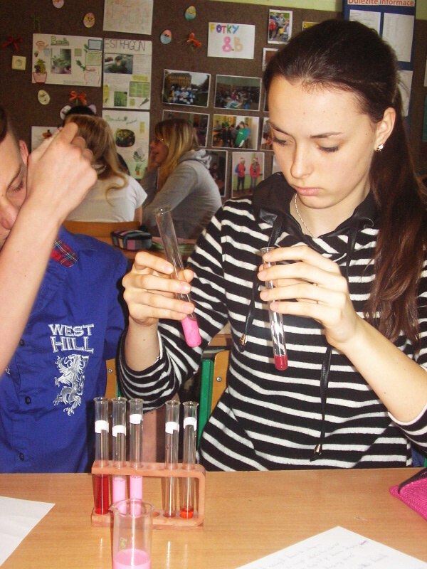 Během školního roku se výuku dětem snažíme zpestřit různými exkurzemi, laboratorními cvičeními, či zajímavými projekty. Jedno z posledních laboratorních cvičení bylo na téma „Krevní skupiny člověka“.Žáci se nejprve snažili seřadit chronologicky, na jednotlivých skutečných příbězích, vývoj darování krve, který né vždy dárci a příjemci přežili. Potom jim byl nastíněn příběh o muži, kterého přivezli do nemocnice po autonehodě. Tento člověk ztratil mnoho krve a právě je převážen na operační sál. Během operace bude potřebovat krevní transfúzi. Do nemocnice přišlo 6 jeho přátel, kteří se nabídli, že mu darují krev.