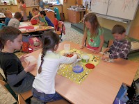 Druhá hodina - příprava zdravého velikonočního zeleninového salátu s vajíčkem (viz. foto)