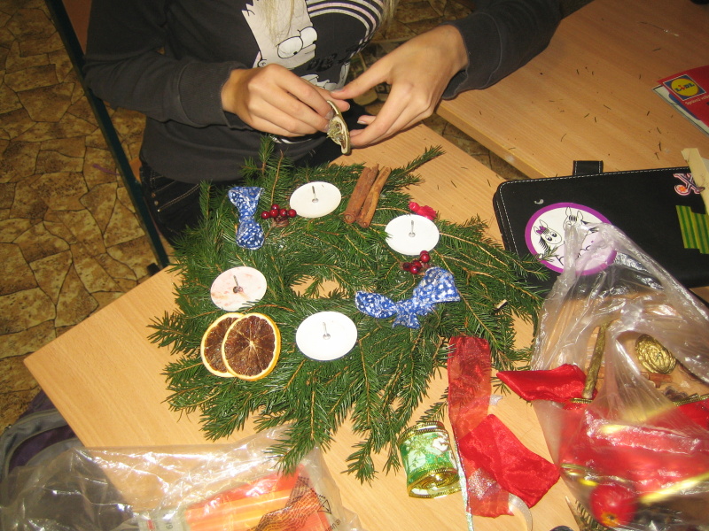 Žákyně Veronika Zelinková, Marie Brumovská a Lucie Kotlandová se rozhodly obohatit nabídku třídy 7.B o adventní věnce. Samy zajistily materiál, nasušily a nakoupily ozdoby. Ve svém volném čase vykouzlily krásné věnečky rozličných barev a vůní, za což jim patří pochvala a dík.