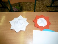 Už z názvu dílny – Složte si své Vánoce - je patrné, že hlavním tématem byly Vánoce, takže se skládaly různé hvězdy a ryby, které je možné využít jako originální dekorace. Na závěr jsme složili funkční káču, která může být dárkem třeba pro mladší sourozence.