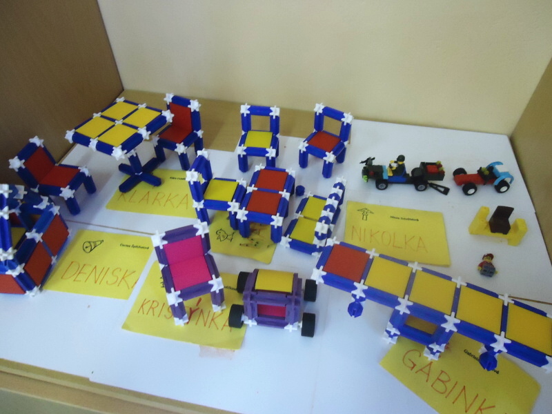 V lednu jsme začali stavět ze stavebnice různé modely aut, letadel, traktorů a nábytku.