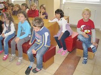 U vstupu nás přivítala paní Kašparová a provedla nás po celé knihovně. Došli jsme i do dětského oddělení, kde se děti dozvěděly, jak se správně zachází s knihami, jak probíhá jejich půjčování a že se řadí do polic podle příjmení. Prohlédli jsme si několik dětských knih i jejich hezké ilustrace. Na závěr nám paní knihovnice přečetla pěkné básničky.