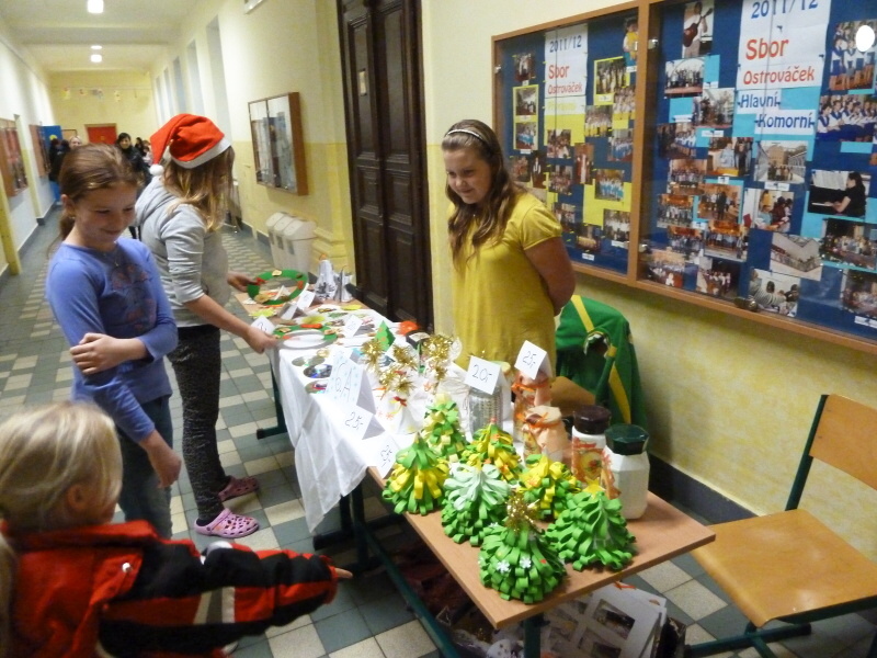 Kdo navštívil ve čtvrtek 27. listopadu odpoledne naši školu, musel zůstat v němém úžasu. Před každou třídou byly na chodbách umístěny prodejní stánky, kde si každý mohl zakoupit překrásné výrobky, které žáci vyráběli pod dohledem svých učitelů v rámci hodin výtvatné výchovy a pracovních činností. Navíc se všichni setkali s milým úsměvem žáků v rolích prodavačů.
