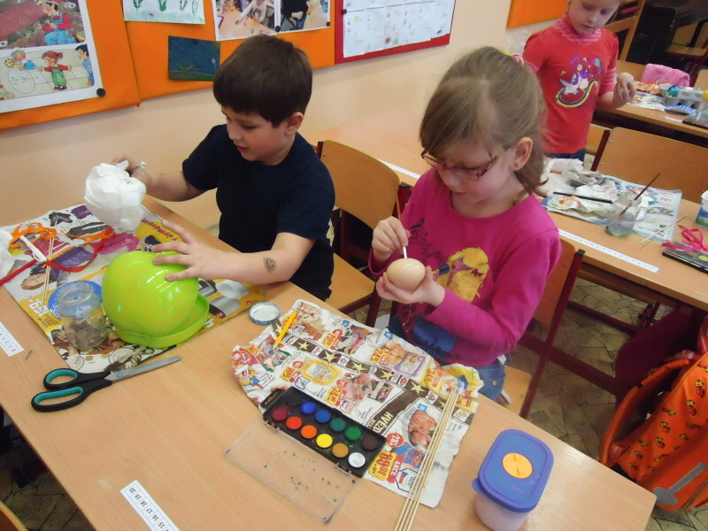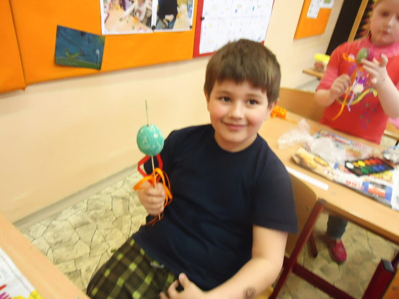 Počasí se zrovna nevydařilo, ale velikonoční přípravy ano. V hodinách výtvarné výchovy a pracovních činností jsme zdobili vejdunky, netradiční technikou kreslili velikonoční vajíčka a nakonec jsme si vyrobili kuřátka z papírových roliček. Dětem se práce líbila a velmi se jim povedla.