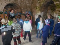 Celý večer a vlastně až do rána na nás škola dýchala tajemstvím a spalo se nám dobře. A pak po snídani jsme vyrazili za dalším dobrodružstvím – do podzemek v Josefově. Čekala nás prohlídka chodeb s programem a na konci dokonce s pokladem!