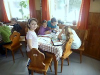 V průběhu týdne došlo i na učení. V malé jídelně to byla většinou skupinová práce. Ostatní volné chvíle vyplnili různé hry a soutěže. Po večeři zbyl někdy čas i na pohádku a dvakrát i na diskotéku. Večerku jsme vyhlašovali hrou ukolébavky na pokojích. Pobyt jsme poslední večer zakončili pasováním účastníků na lyžaře pod širým nebem plným hvězd.