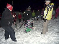 Ve čtvrtek i v pátek jsme plně využili kapacitu malé sjezdovky. Začátečníci během jednoho odpoledne zvládli základy jízdy dolů i nahoru. Odpoledne kolem páté hodiny se nám ani nechtělo do chalupy. Užili si i naše Horalky (holky, co byly jen na pekáči a na saních). Někdy byly slyšet z kopečka vedle chaty opravdu strašidelné výkřiky. Ale vše dobře dopadlo. Klárka dokonce ke konci týdne našla v závěji čepici, kterou tam Sofinka ztratila v den příjezdu. Čepice rozmrzala až do pátku.