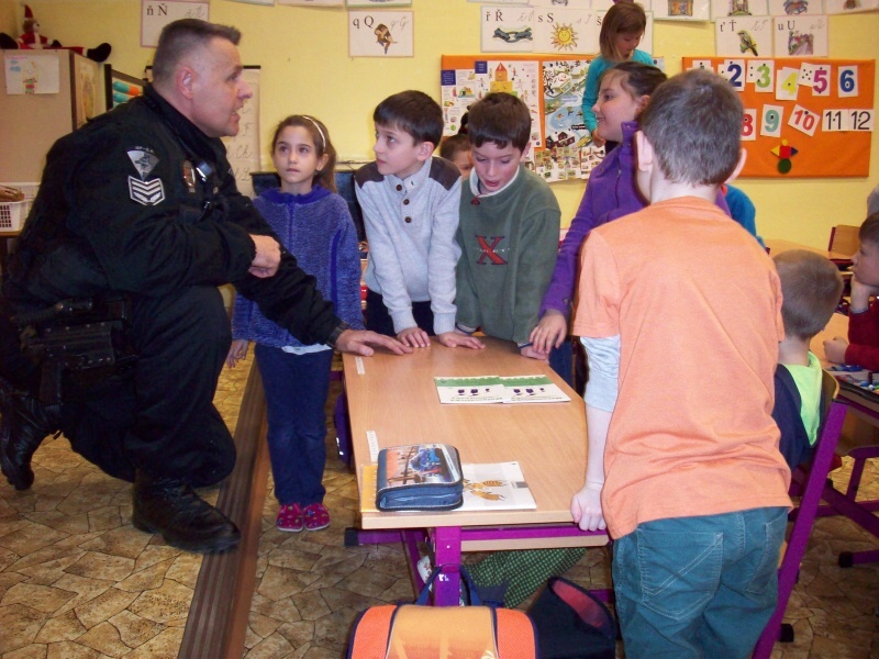 S žáky si povídal, jak mají správně přecházet vozovku, jak se správně rozhlédnout a jak správně zvládnout přechod pro chodce. Vše názorně s dětmi ukazoval. Beseda byla poučná, bezpečnost je pro naše žáky důležitá!