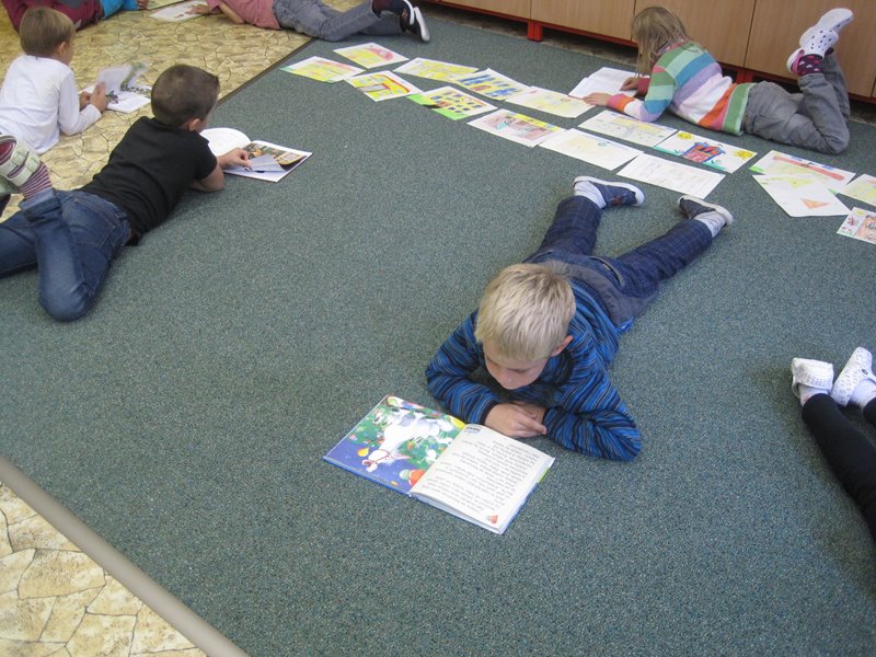 Žáci si vyzkoušeli tiché čtení vlastní nebo půjčené knihy formou tichého čtení ve třídě. S knihou dál pracovali ve dvojicích, vyprávěli si navzájem o přečteném, hodnotili a doporučovali spolužákům svoji knihu.