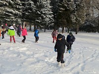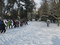 V pátek jsme se na hodinu tělocviku vydali místo do tělocvičny do parku u školy, abychom využili sněhovou nadílku. Nejprve jsme se vypravili na slalom po stopách Yettiho a trochu se rozhýbali. Poté si připravili střelivo a snažili se ulovit ledního medvěda spícího a ve druhém kole i pádícího zasněženou plání. Na konec se strhla sněhová bouře. Hodina rychle utekla a nám se ze zasněženého parku ani nechtělo. Doufáme, že si sněhu ještě někdy užijeme.