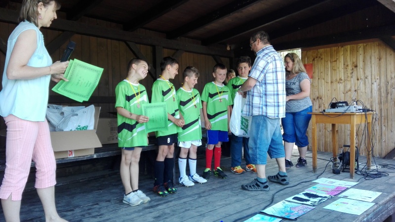Do Dolan jsme dojeli polními cestami na kolech. Ve fotbale nás reprezentovalo pět chlapců, Kašpar, Krsek, Gerécz A., Jakl, Špůr. Další děti se rozdělily na atletický trojboj a výtvarnou soutěž. Celé dopoledne se soutěžilo a kolem půl dvanácté už bylo jasné, kdo získá medaile.