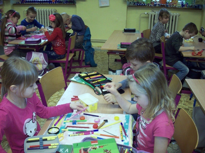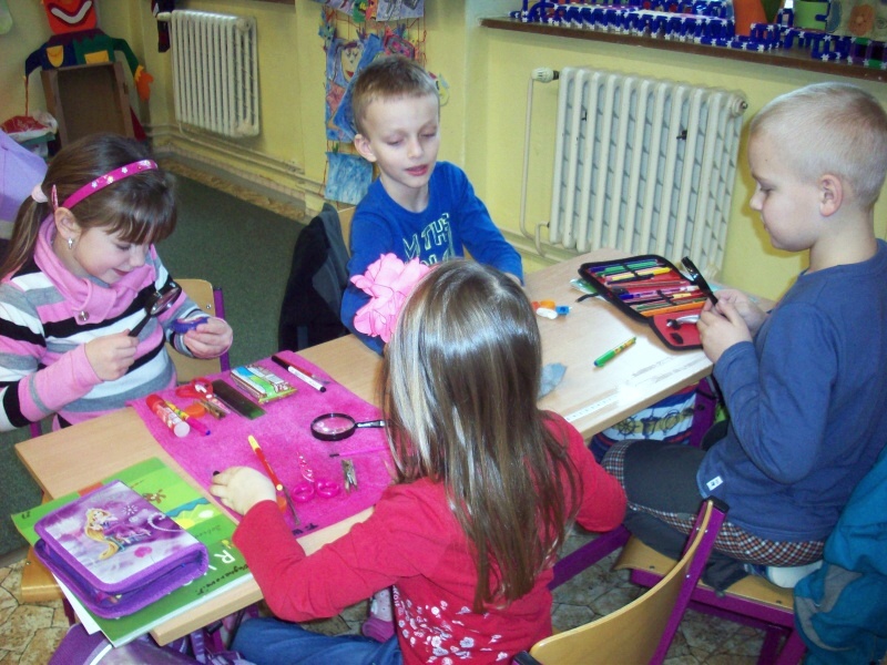 Pozorovali jsme předměty lupou, zkoumali, které předměty magnet přitahuje, které plavou ve vodě,…. Vše jsme zapisovali do tabulky v pracovním sešitě. Stali se tak z nás malí badatelé a pozorovatelé. Ze třídy tak byla „malá laboratoř“.
