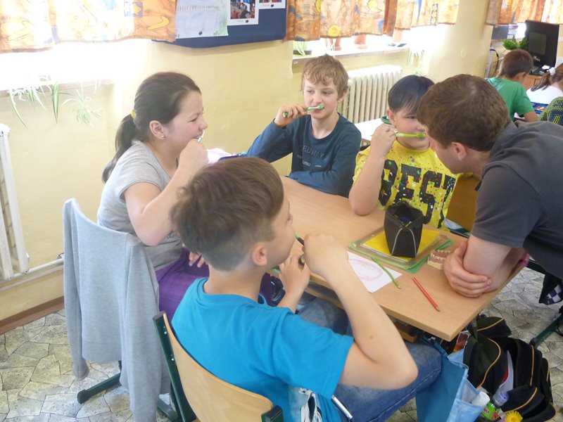 „Čisti si ty zuby pořádně!“ slýchávají děti hlavně od svých rodičů. Když jim to ale přijdou vysvětlit budoucí páni zubaři, chytne se i ten největší lenoch. K nám dnes přišli studenti Lékařské fakulty Hradec Králové, aby s dětmi pobesedovali o tom, jak mít zdravé zuby po celý život. Samozřejmě nezůstalo pouze u teorie. Děti měly s sebou zubní kartáček a tak si pod vedením budoucích zubařů každý vylepšil svou techniku čištění zubů.