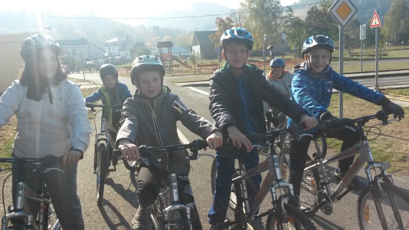 Tak jako ostatní žáci čtvrtých tříd vydali jsme se i my na dopravní hřiště do Náchoda - Bělovsi. Nejprve na nás čekala trocha teorie z pravidel silničního provozu. Pak si každý nasadil cyklistickou přilbu a hurá na kola. Nebyla to jen tak obyčejná projížďka za slunného počasí, museli jsme pečlivě dodržovat pravidla, sledovat dopravní značky, rozhodovat se správně na křižovatkách. Uvidíme, jak se nám bude dařit na jaře, až budeme skládat zkoušku, abychom získali průkaz cyklisty.