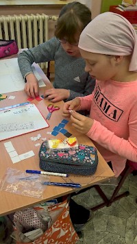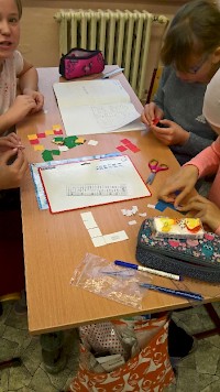 O tom, že geometrie není jen rýsování, se přesvědčili i páťáci. Při skupinové práci si vylosovali proužek se sítěmi krychlí, které ovšem nebyly všechny správné, některé se nedaly poskládat. Žáci měli za úkol nejprve pouhým okem a pomocí své představivosti zkusit odhadnout, které ze sítí jdou složit a které ne. V druhé fázi dostali čtverečky a lepítka a všechny sítě si manipulativní činností vytvořili a vyzkoušeli, zda tipy byly správně. Úspěšnost tipů byla prakticky stoprocentní, radost byla oboustranná.