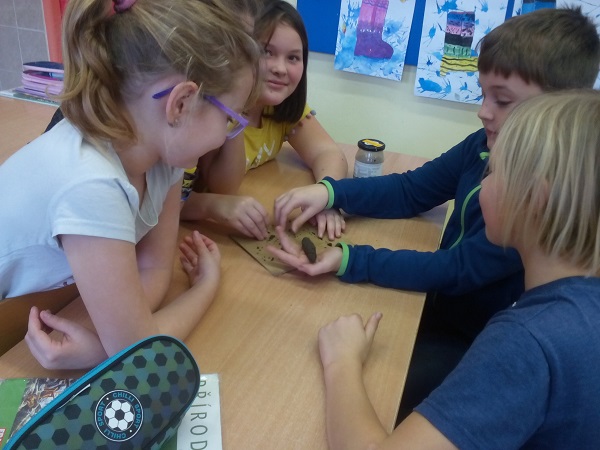 Půdu nepovažujeme za něco zvláštního, ale my jsme ji při přírodovědě trochu prozkoumali. Pracovali jsme ve skupinách a každá skupina měla jiný vzorek půdy. Vyzkoušeli jsme například, zda se podaří z daného vzorku udělat váleček, jakou velikost mají zrna v půdě a pokusili se tak určit druh půdy. Na závěr jsme pozorovali, jaké organické části půda obsahuje. Mnozí byli i překvapeni, co všechno objevili.