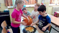 Také tvoření nám jde pěkně od ruky. Pilně jsme pracovali na kolážích krásných sněžných sov, které budou zdobit letošní výlohu v muzeu. Na vánoční prodejní akci připravujeme jako již tradičně výrobky z keramické hlíny. Nejvíce nás ale rozhodně bavilo halloweenské dlabání dýní. Podívejte se ve fotogalerii. Děti si užily i mnoho akcí ve školní družině.