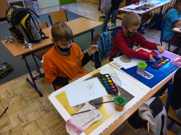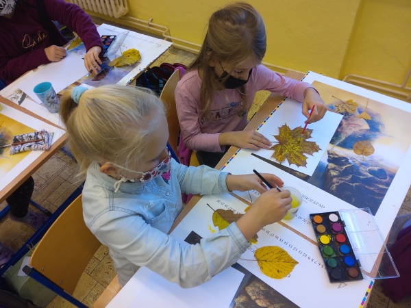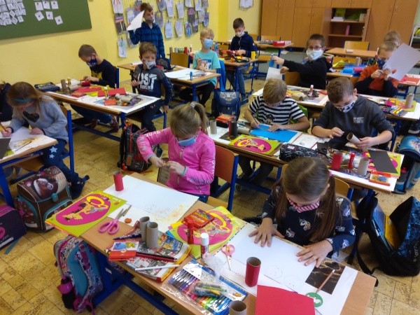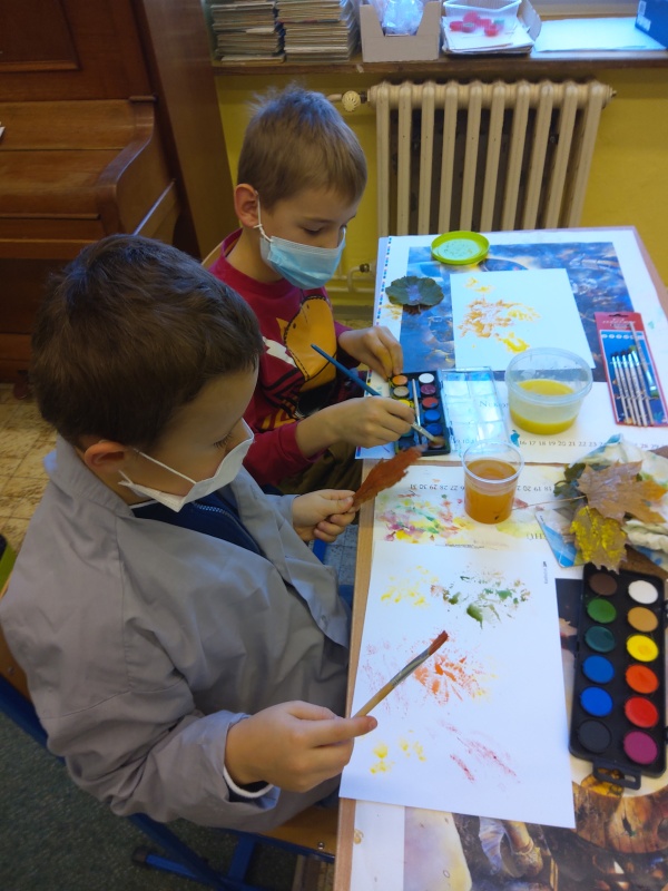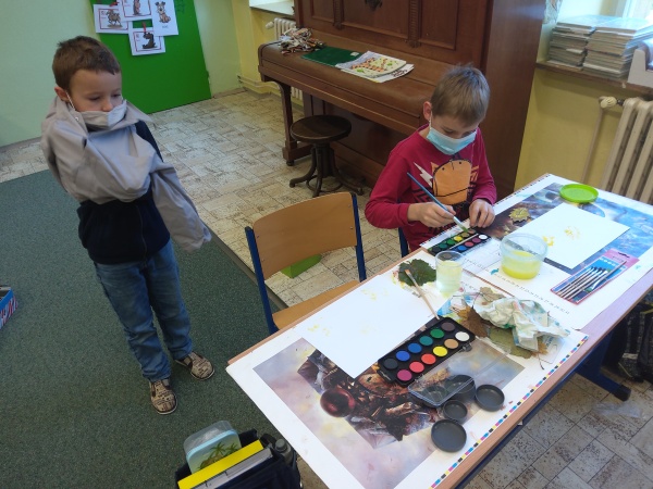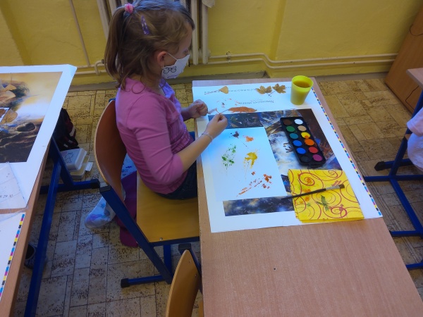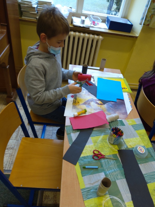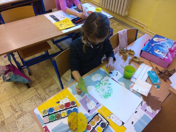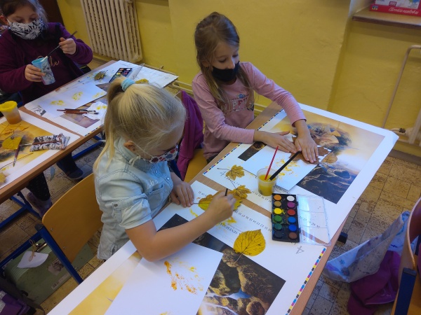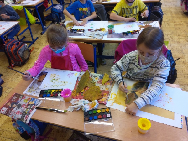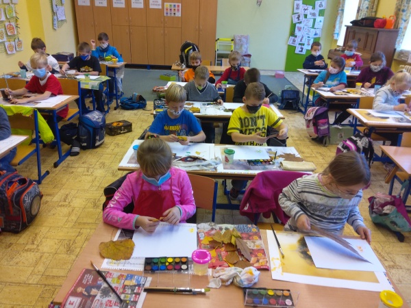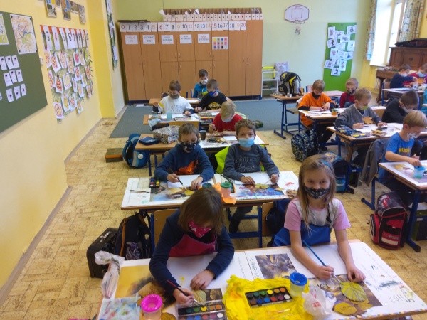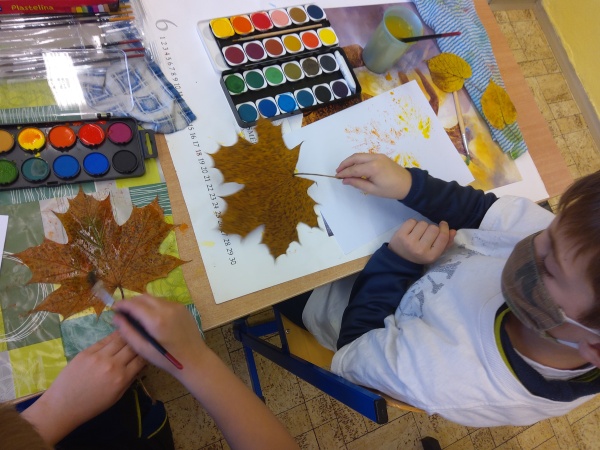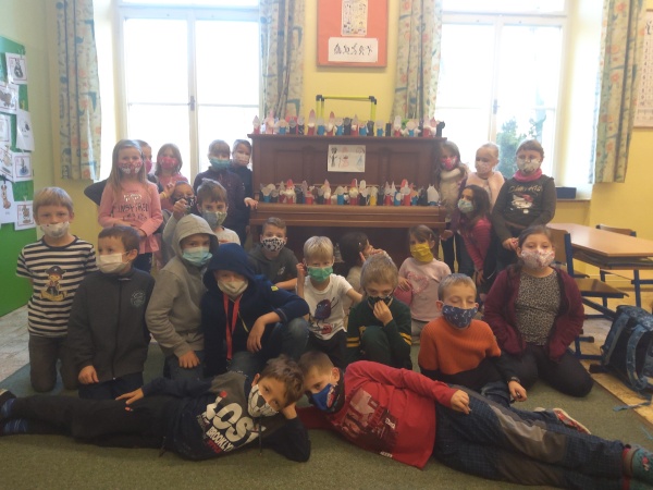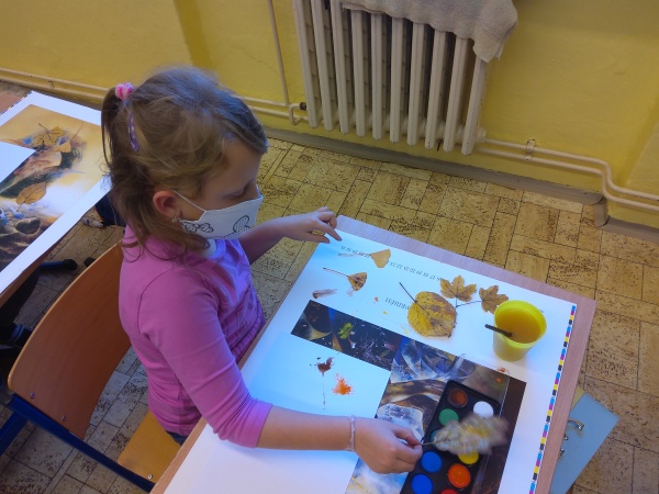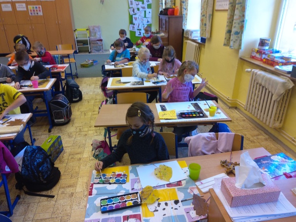 V druhé polovině listopadu se děti vrátily zase do školy. Plynule jsme navázali na on-line výuku. Konečně jsme se také mohli věnovat výtvarné výchově a pracovním činnostem. Jen jsme si stihli otisknout nějaký ten podzimní list a vyrobit krásný deštník, už nám na dveře klepali Mikuláš, anděl a čert.