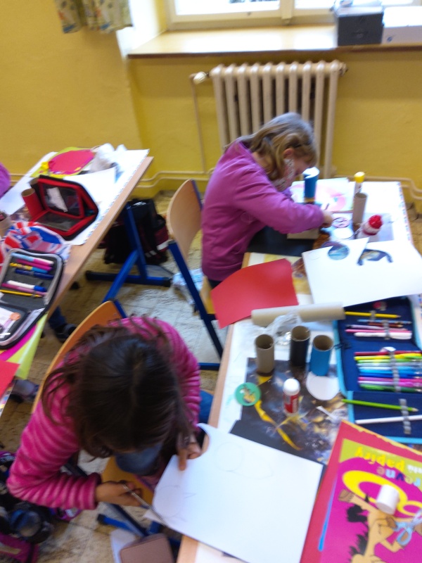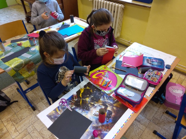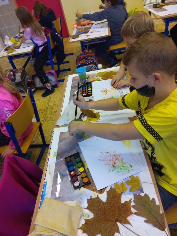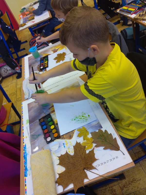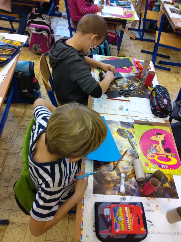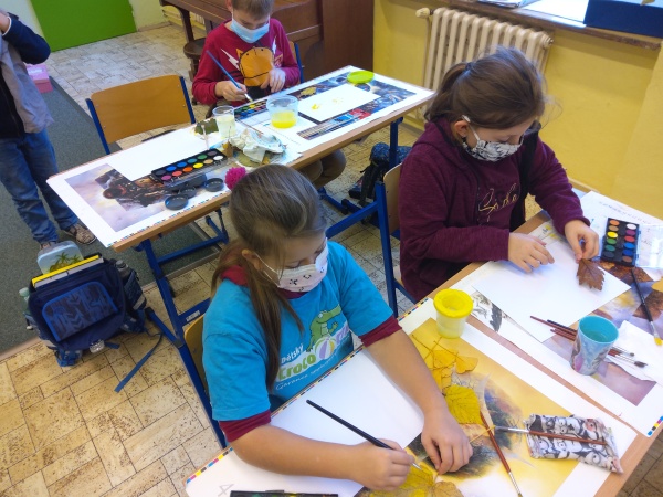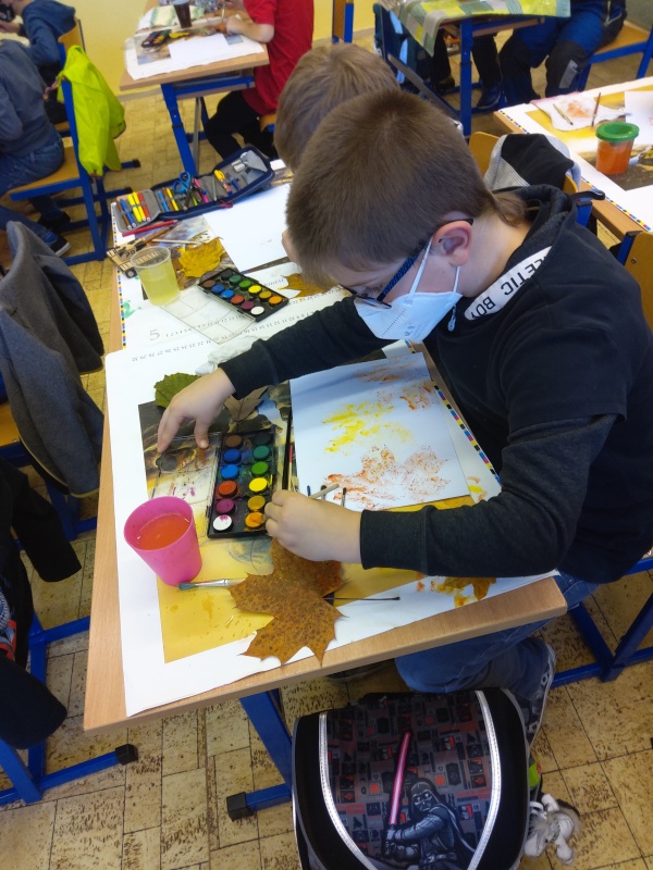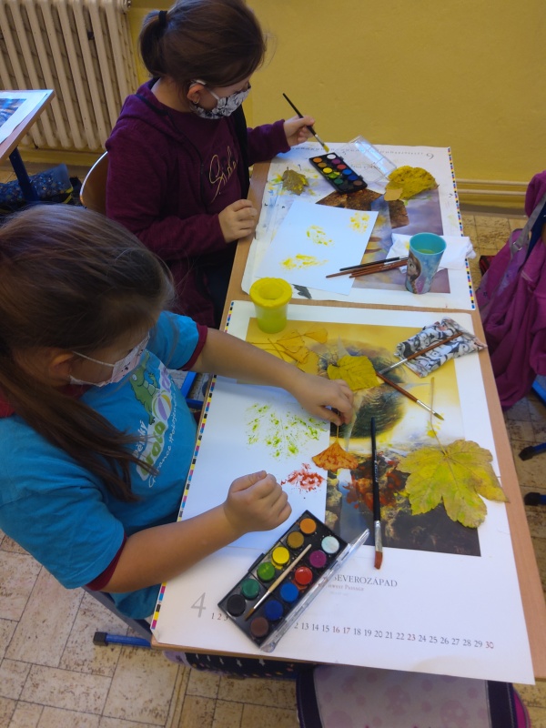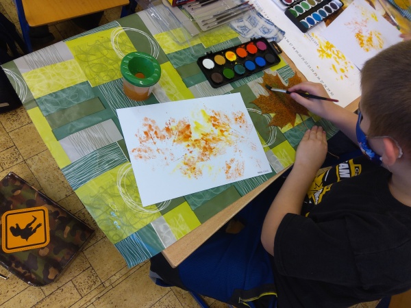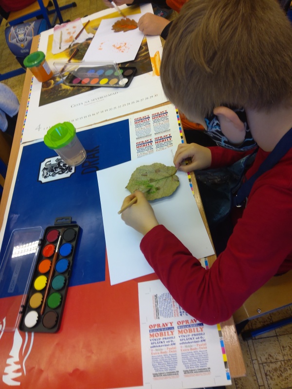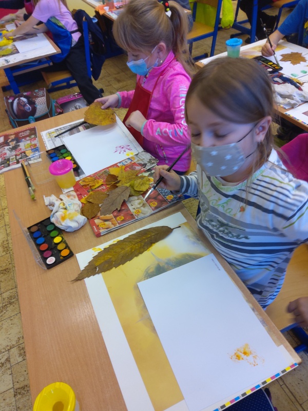 V druhé polovině listopadu se děti vrátily zase do školy. Plynule jsme navázali na on-line výuku. Konečně jsme se také mohli věnovat výtvarné výchově a pracovním činnostem. Jen jsme si stihli otisknout nějaký ten podzimní list a vyrobit krásný deštník, už nám na dveře klepali Mikuláš, anděl a čert.