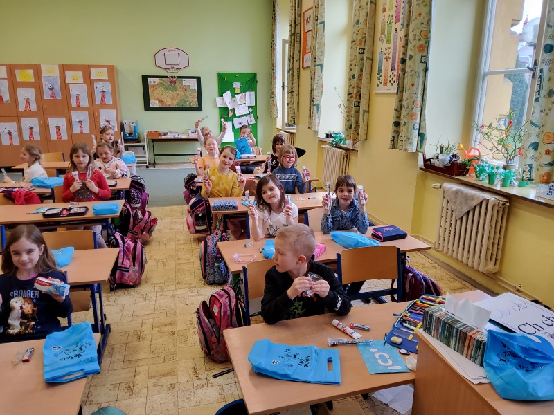 Velice rádi jsme se se všemi prvňáčky zapojili do tohoto programu, protože péče o zuby je nedílnou součástí výuky Prvouky a také patří ke každodenní péči o zdraví člověka. Autoři programu pro děti připravili kromě pracovního listu, samolepek do koupelny se správným postupem čištění zoubků a taštičkou s produkty péče o zuby i film Jak se dostat Hurvínkovi na zoubek, který se dětem velice líbil. Věříme, že i tento program pomůže dětem zkvalitnit péči o jejich zoubky a celkové zdraví.