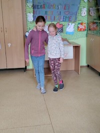Při této hodině byly děti rozděleny do dvou skupin a musely vymyslet různé způsoby přenášení u odlišně zraněných osob. Zpočátku jim vše šlo pěkně. Pak ale všichni obdrželi dřevěné tyče a montérkovou bundu, v tu chvíli byste chtěli jako zraněná osoba raději čekat na příjezd zkušenějších zdravotníků, než-li být naloženi na podivný dětský výtvor. Na závěr hodiny jsme si ukázali, jak při transportu člověka postupují profesionálové, aby přenášená osoba nepřišla k další újmě na zdraví.