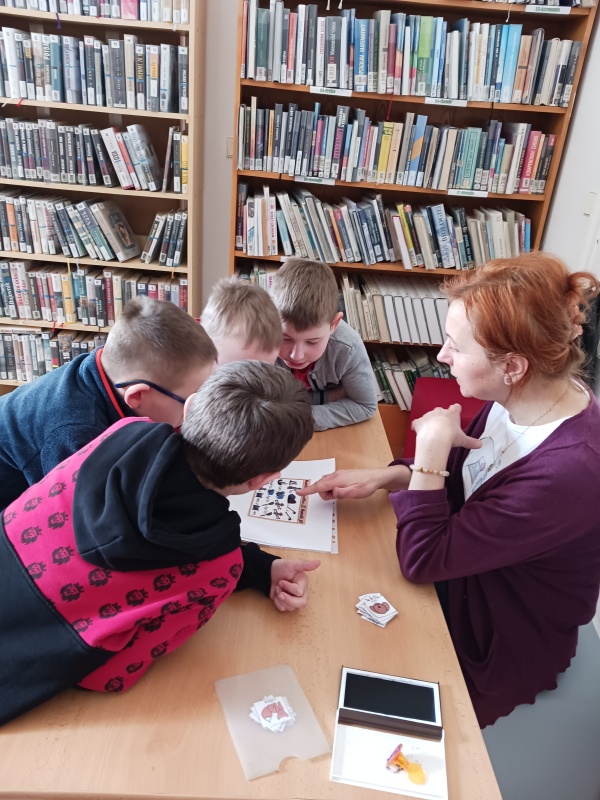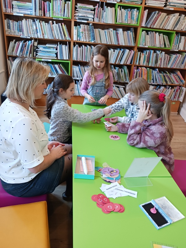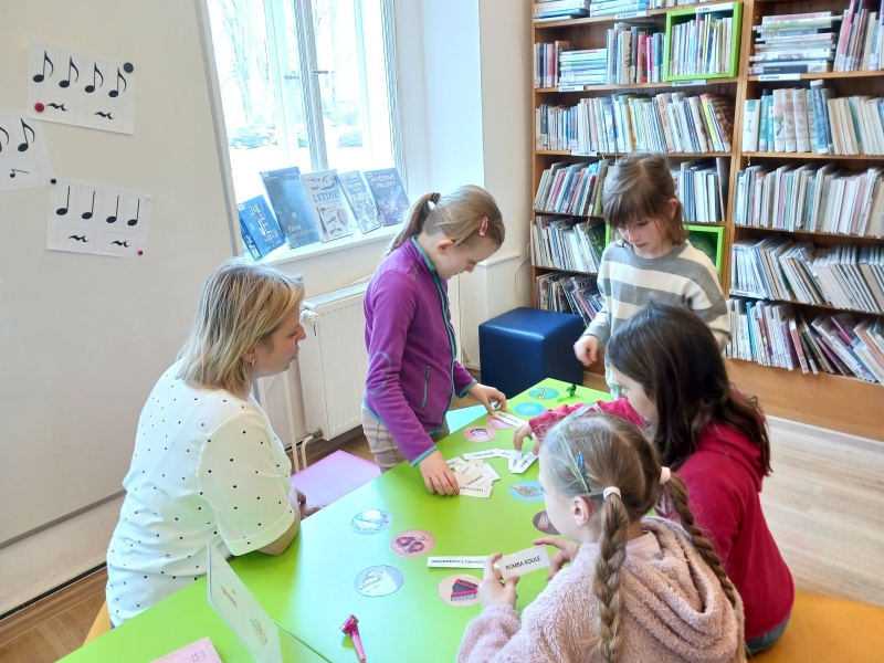 Každý rok touhle dobou chodí děti 1. – 3. tříd v rámci výuky do knihovny. Zde pro ně paní knihovnice připraví stanoviště s různými úkoly na dané téma, kterým je letos Rok české hudby. Děti se rozdělily do pěti skupin a na stanovištích si vyzkoušely složit a ozdobit papírovou harmoniku, „odfrkat“ do cíle kelímek s notami, zazpívat písničku podle obrázků, poznat hudební nástroje nebo písničky z dětských pohádek. Všichni dané úkoly splnili, od paní knihovnic dostali malý dárek a na oplátku jim zazpívali písničku.