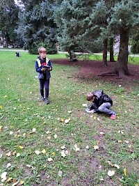A když už jsme byli u té přírody, tak jsme si v parku udělali takové malé podzimní opakování českého jazyka - běhací diktát - najdi obrázek a napiš slovo správně.