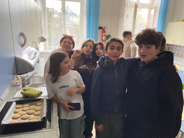 Pozdrav od našich angličtinářů přichází tentokrát z trochu netradičního místa - a to ze školní kuchyně. V rámci hodin volitelné konverzace v osmém ročníku jsme totiž pekli tradiční americké sušenky. A kdo může být lepším průvodcem na takové misi než naše rodilá mluvčí Madison? Nejen, že naše žáky od září provází na jejich cestě ke zdokonalování se v anglickém jazyce, ale rozšiřuje jim i kulturní obzory... Přikládám recept, abyste si podzimní dny mohli touto sladkou dobrotou také zpříjemnit. Ať vám chutná stejně jako našim angličtinářům!