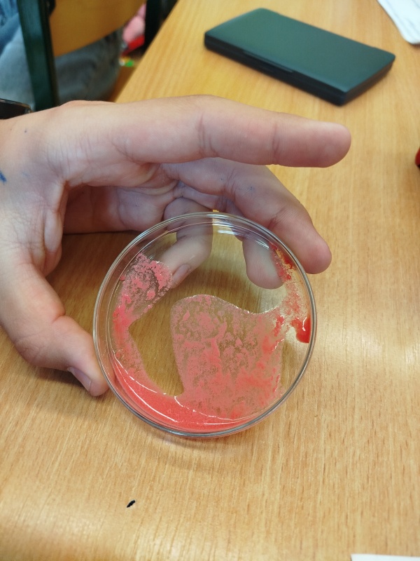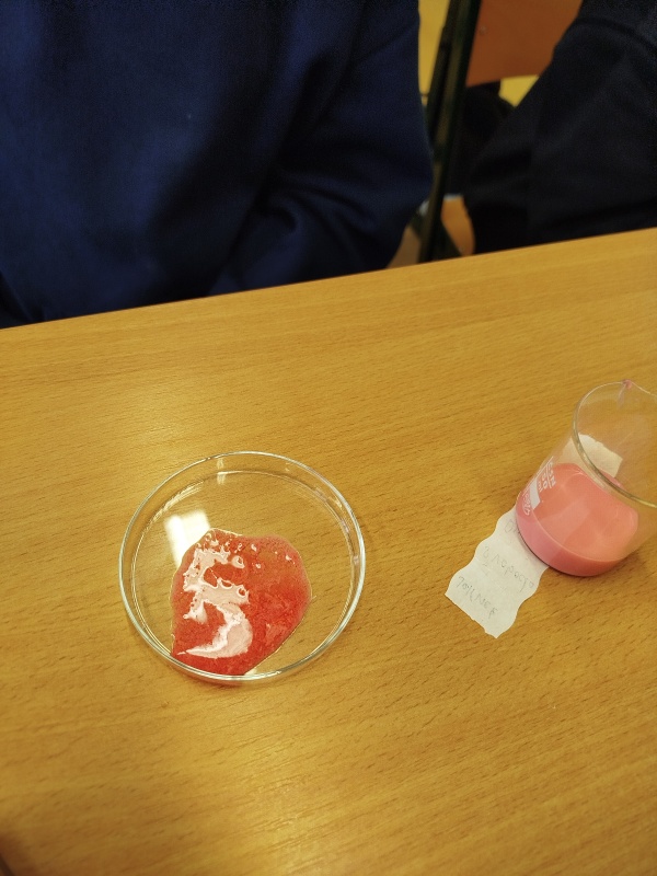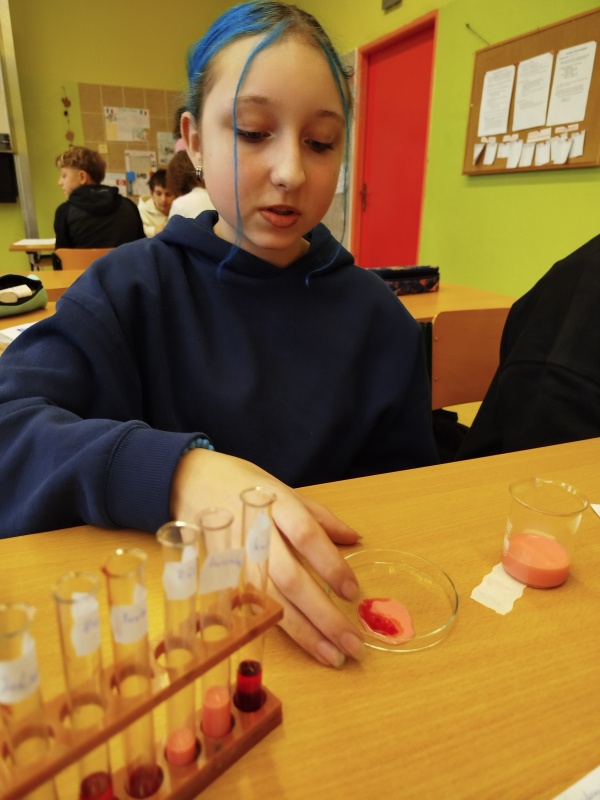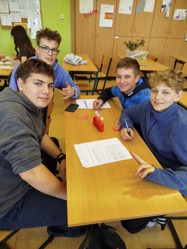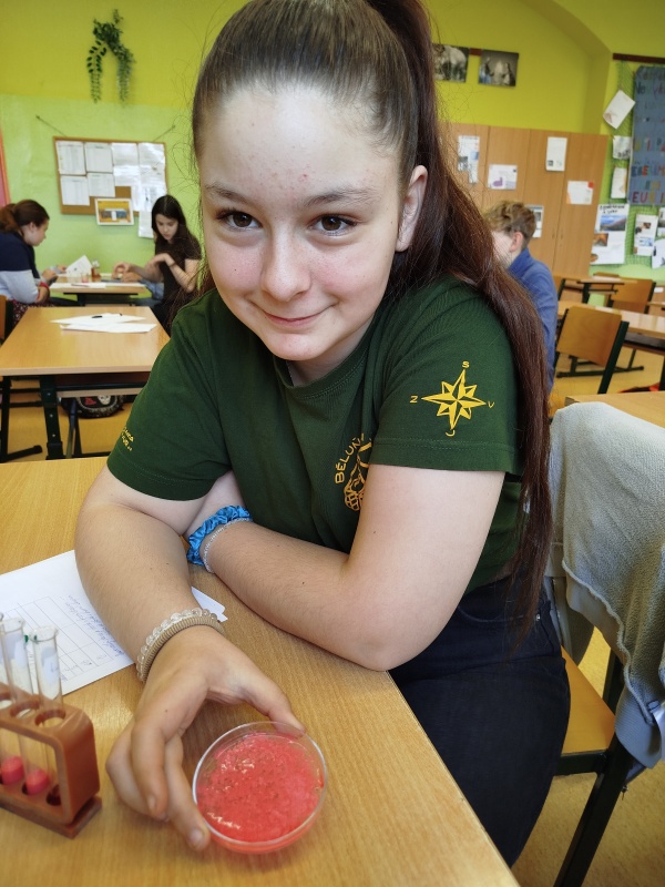 Žáci vystaveni tomuto příběhu dostali zkumavku krve raněného muže a 6 dalších se vzorky možných dárců. Náhražkou skutečné krve, se kterou nemůžeme pracovat, byl ocet, voda, mléko a speciální filtrát. To vše obarveno červeným potravinářským barvivem. Mícháním krve tak zjišťovali vhodné dárce a určovali krevní skupiny. Některá krev se jim srazila a vytvořila nebezpečnou sraženinu, jiná pouze obsah naředila. Při hodnocení práce se žáci dozvěděli několik kuriozit z historie transfuze. Dále jsme si vysvětlili, jak probíhá transfuze dnes, a zamysleli se nad budoucí možností zachraňovat lidské životy touto nenahraditelnou tekutinou.