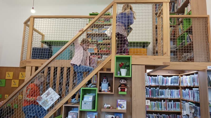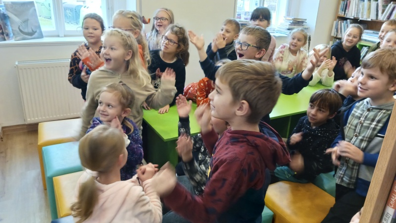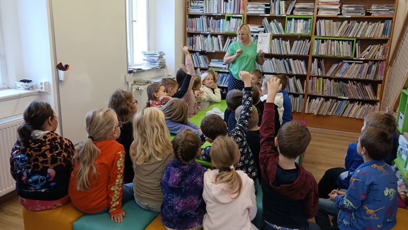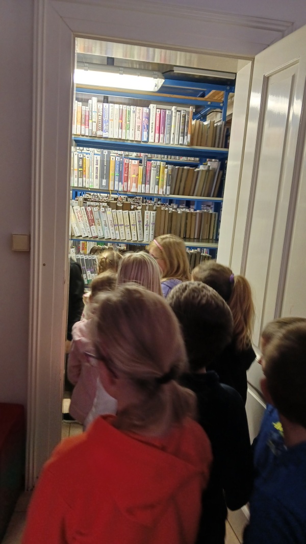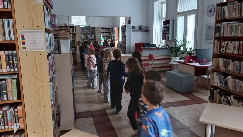 Je čtvrtek 13. listopadu a my vyrážíme na besedu směr městská knihovna. Naštěstí to nemáme vůbec daleko, a tak jsme brzy v cíli. Paní knihovnice už na nás čekala, uvítala nás a rovnou provedla knihovnou včetně velkého skladu knížek. Potom jsme šli do oddělení pro děti, kde už to prvňáci znají. Chodí sem totiž se školní družinou.