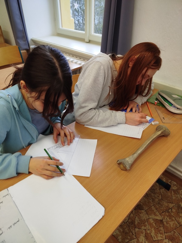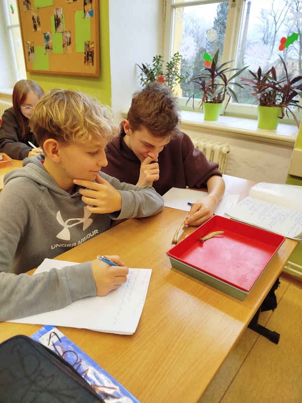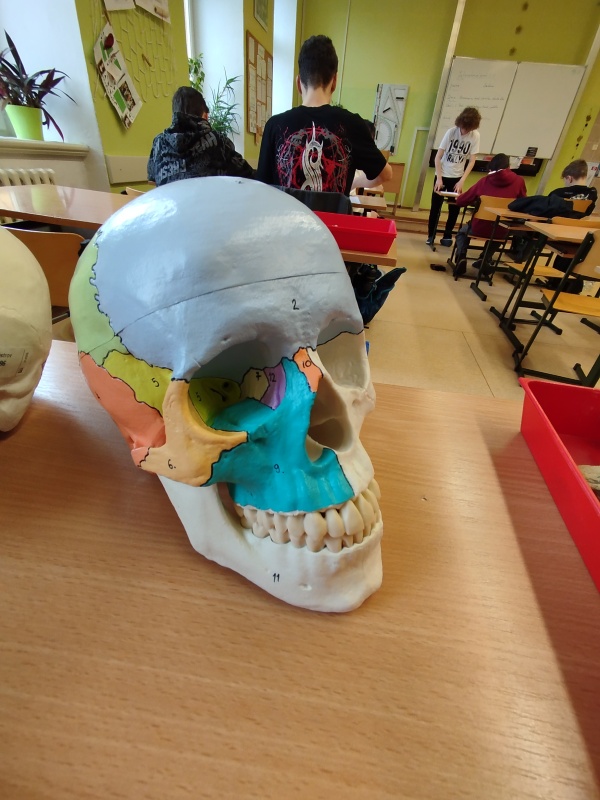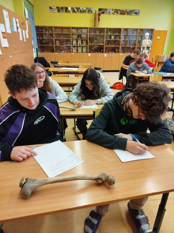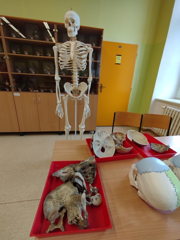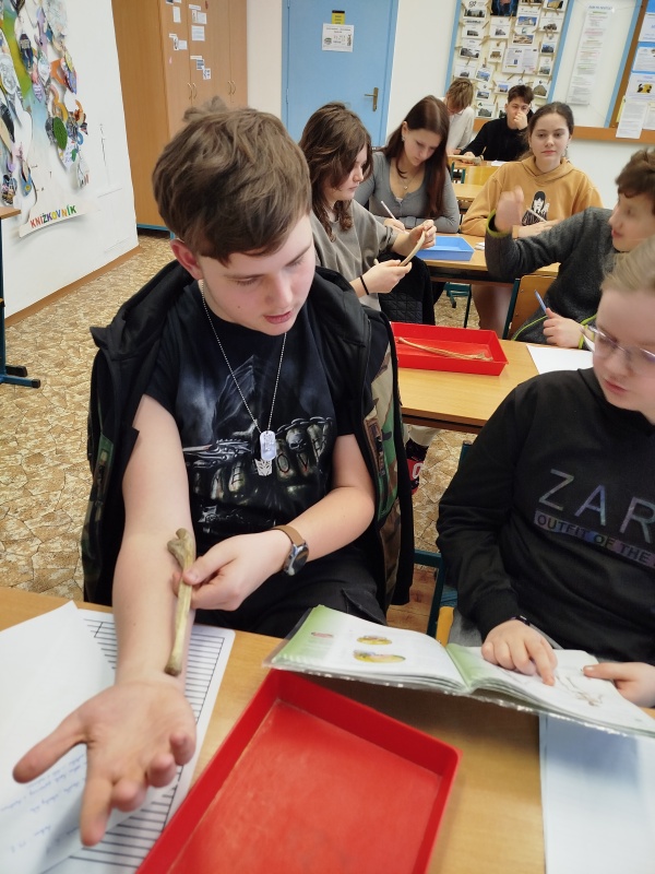V osmém ročníku se učíme o lidské kostře. Žáci se učí kosti nejen pojmenovat, ale i určovat jejich polohu v těle a zkoumat rozdíly. Víte, jaká kost je v těle nejtvrdší? Znáte kost, která je nejdelší? Víte, kolik máte žeber? Na naší škole máme velké množství nových pomůcek, které žáci mohou využívat. Podívejte se na fotografie žáků osmých tříd, na kterých se snaží najít odpovědi na své otázky.