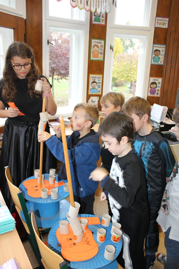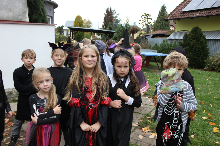 Děti už byly v kostýmech od rána, i výuka probíhala v duchu halloweenském.