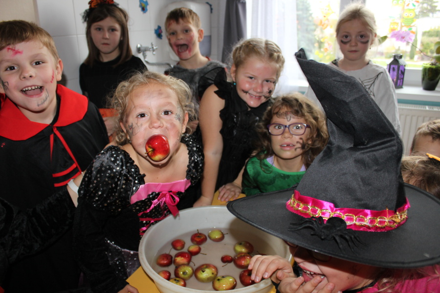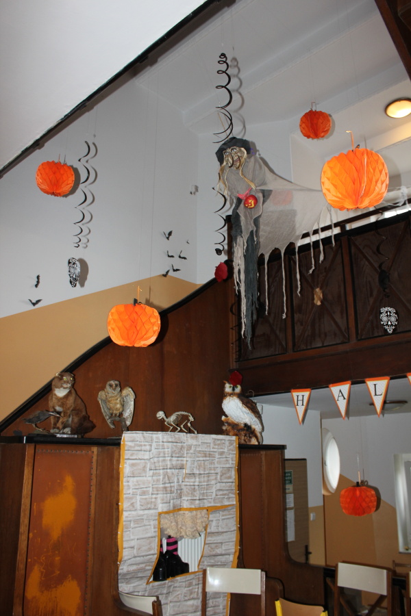 Odpoledne jsme za pomocí indicií hledali poklad, ochutnali lektvary, skládali dýně, lovili netopýry, tahali pavouky atd. ....