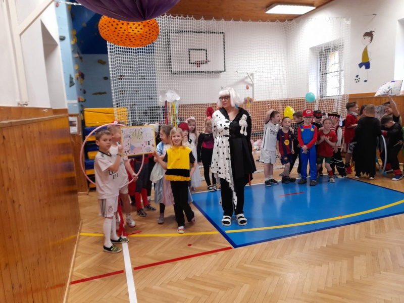 Děti si připravily třídní vlajky a pokřiky, které předvedly na slavnostním ceremoniálu. Každá třída představovala jeden olympijský kruh, které jsme pak sestavily v živém obrazu jednotlivých tříd. Zapálily jsme olympijský oheň a karnevalové disciplíny mohly začít.