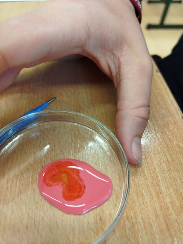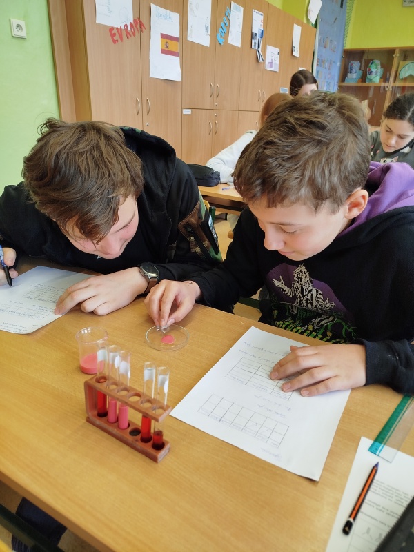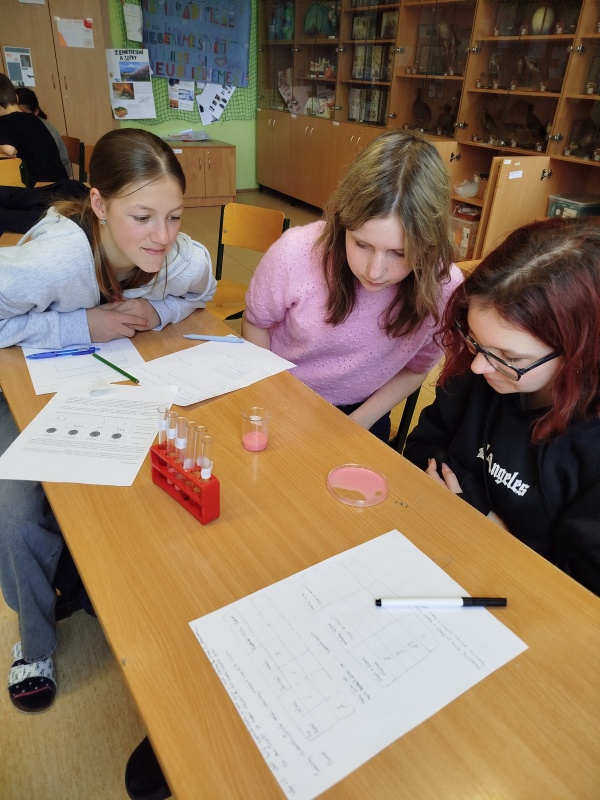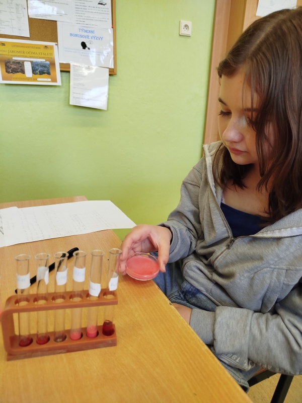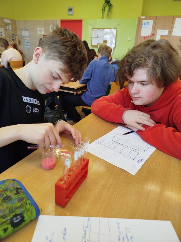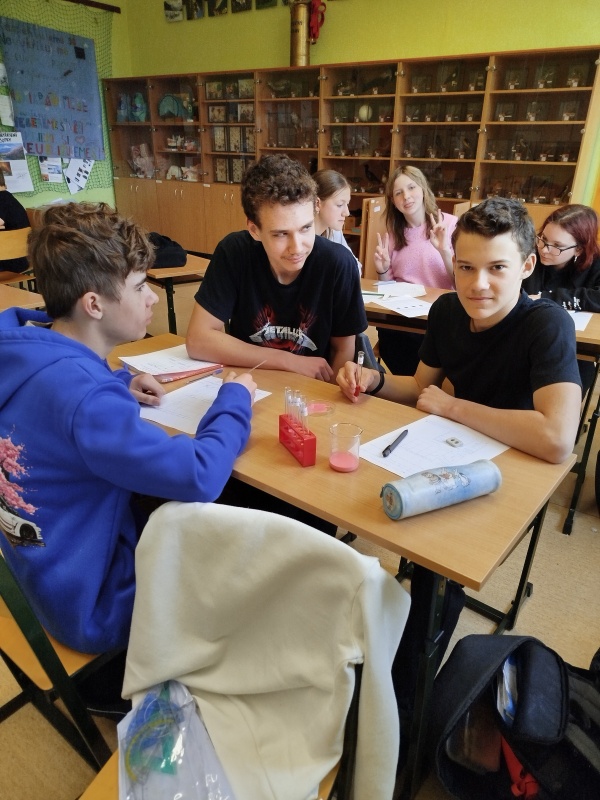 Žáci vystaveni tomuto příběhu dostali zkumavku krve raněného muže a 6 dalších se vzorky možných dárců. Náhražkou skutečné krve, se kterou nemůžeme pracovat, byl ocet, voda, mléko a speciální filtrát. To vše obarveno červeným potravinářským barvivem. Mícháním krve tak zjišťovali vhodné dárce a určovali krevní skupiny. Některá krev se jim srazila a vytvořila nebezpečnou sraženinu, jiná pouze obsah naředila. Při hodnocení práce se žáci dozvěděli několik kuriozit z historie transfuze. Dále jsme si vysvětlili, jak probíhá transfuze dnes, a zamysleli se nad budoucí možností zachraňovat lidské životy touto nenahraditelnou tekutinou.