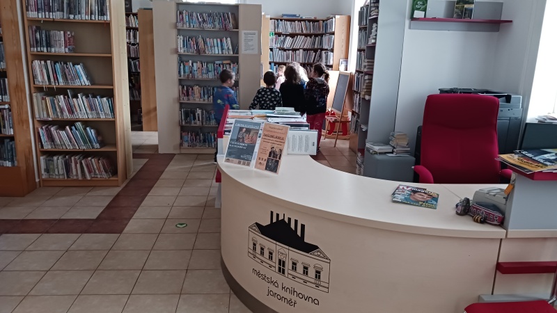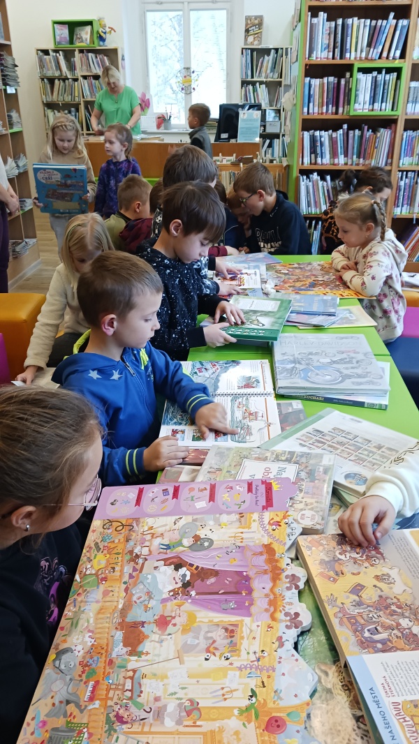 Je čtvrtek 13. listopadu a my vyrážíme na besedu směr městská knihovna. Naštěstí to nemáme vůbec daleko, a tak jsme brzy v cíli. Paní knihovnice už na nás čekala, uvítala nás a rovnou provedla knihovnou včetně velkého skladu knížek. Potom jsme šli do oddělení pro děti, kde už to prvňáci znají. Chodí sem totiž se školní družinou.