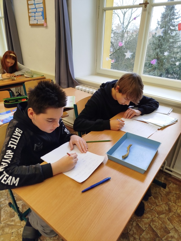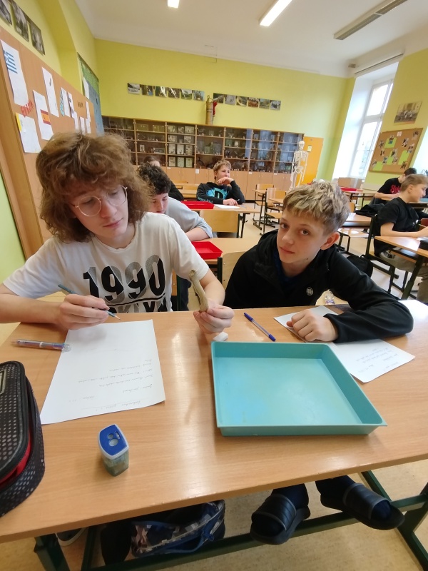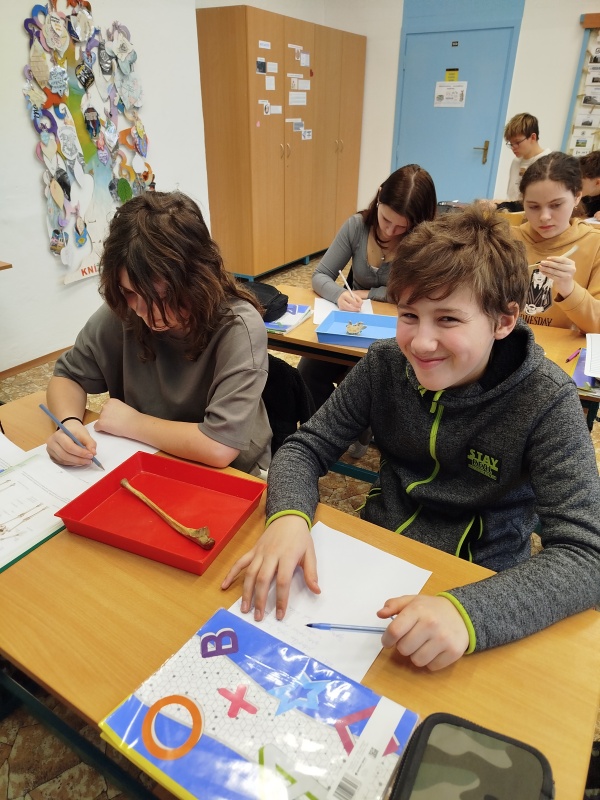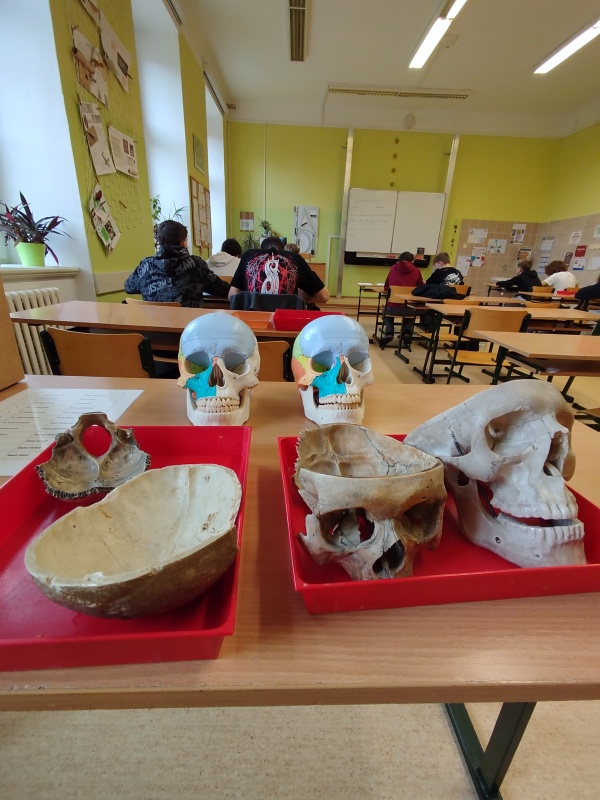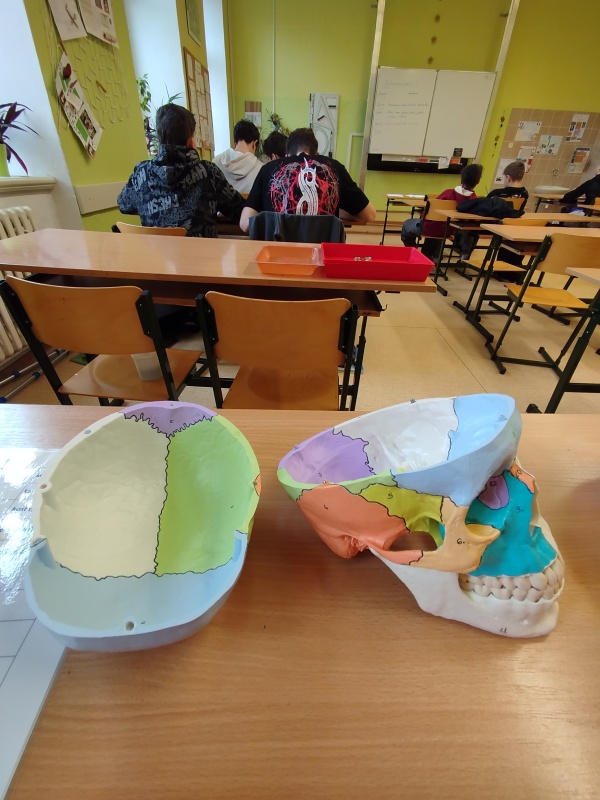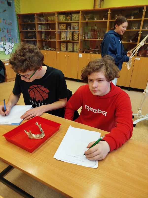 V osmém ročníku se učíme o lidské kostře. Žáci se učí kosti nejen pojmenovat, ale i určovat jejich polohu v těle a zkoumat rozdíly. Víte, jaká kost je v těle nejtvrdší? Znáte kost, která je nejdelší? Víte, kolik máte žeber? Na naší škole máme velké množství nových pomůcek, které žáci mohou využívat. Podívejte se na fotografie žáků osmých tříd, na kterých se snaží najít odpovědi na své otázky.
